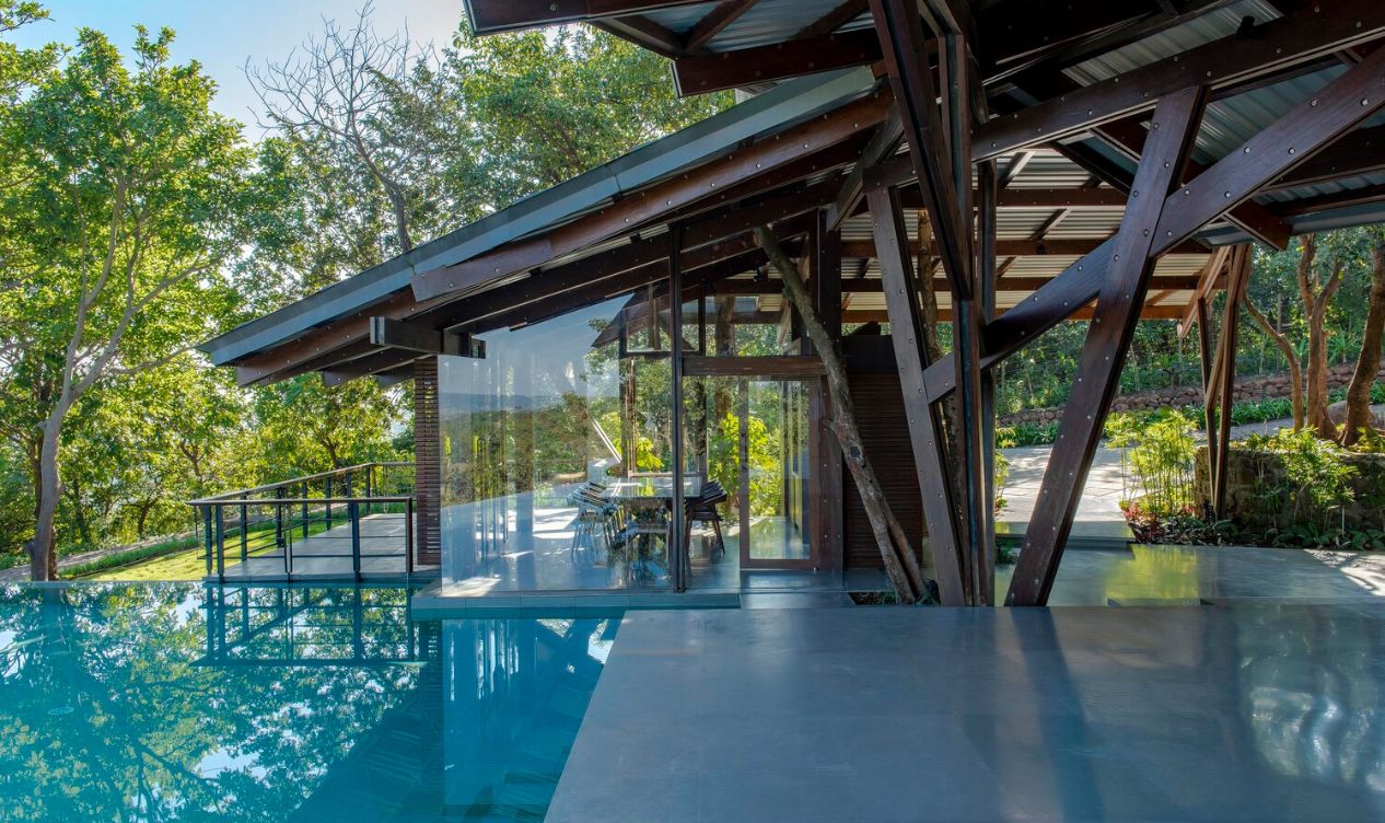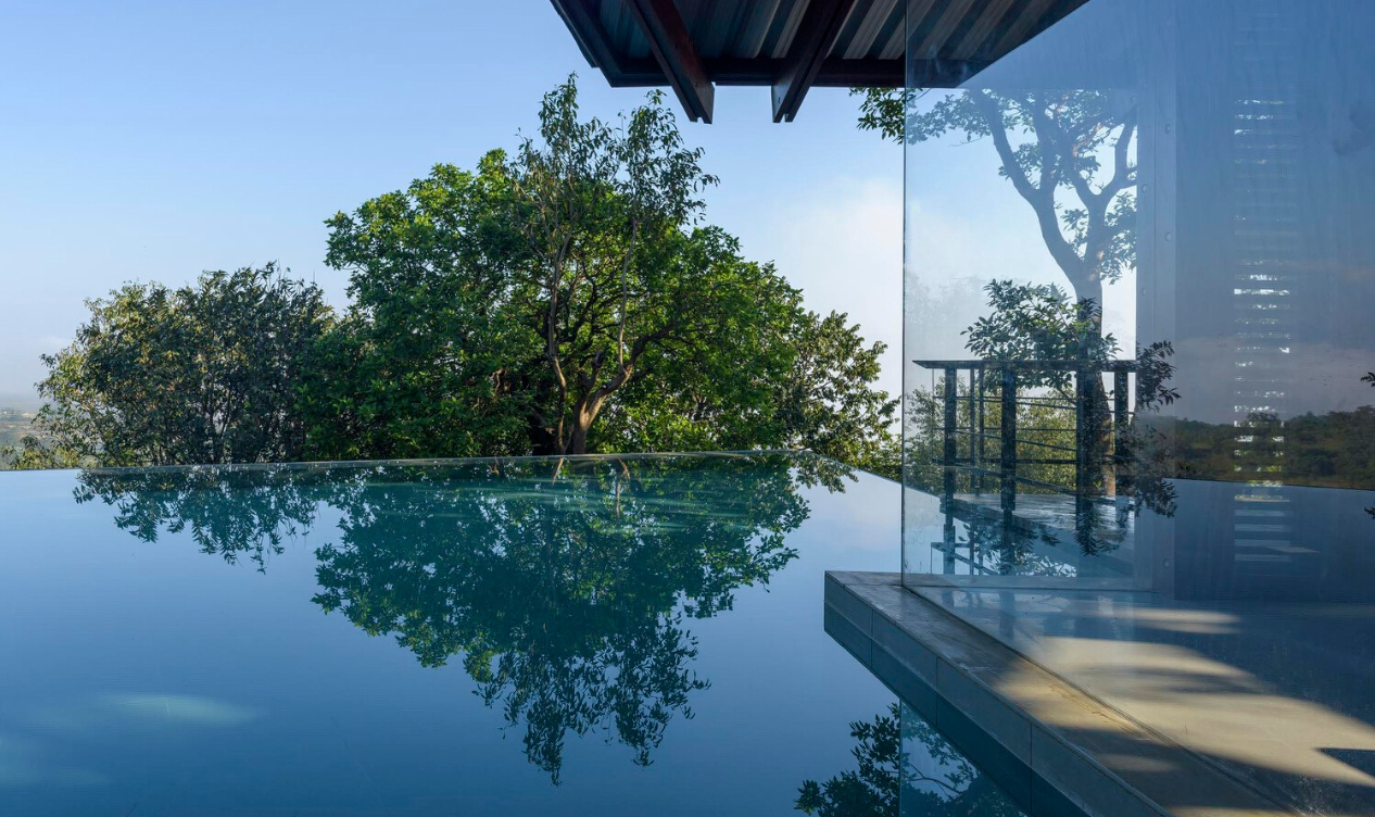 The Lateral Verandah House is a stunning architectural masterpiece that seamlessly blends into its natural surroundings. Situated on a densely forested and steep land in close proximity to Tung Fort, this house offers breathtaking views of the landscape. Built in separate phases from the House of Three Streams, it features two primary levels, with communal spaces on the upper level and sleeping and mechanical areas on the lower level.