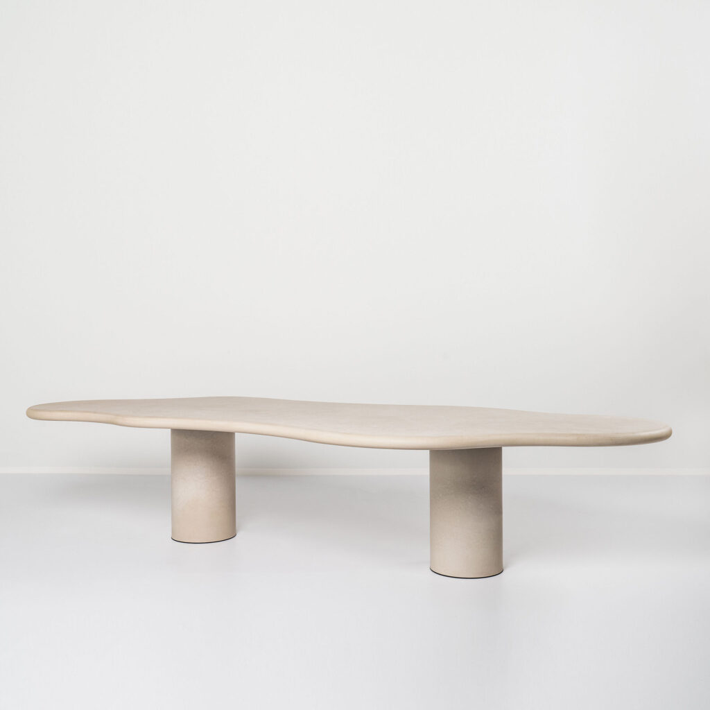 The Bieke Casteleyn. Micro cement was used to create the out of line dining table. This cement can be finished in a variety of colors, including white, sand, light grey, black, and olive. Dining tables are frequently stereotyped and experienced within the lines.
