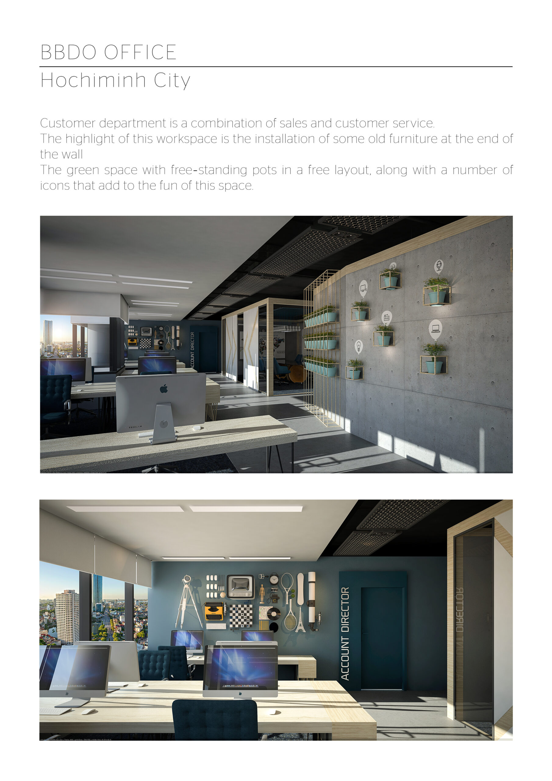 Khi dự án tiến triển, tôi rất vui khi thấy không gian dần trở nên sống động. Bước vào văn phòng BBDO, bạn sẽ cảm nhận được sự thoáng đãng, tràn ngập ánh sáng tự nhiên từ những khung cửa sổ lớn và không gian mở. Những bức tường sáng màu với tông trung tính đi kèm với các bức tranh được vẽ để thể hiện cá tính riêng biệt của từng nhân viên, tạo nên một không gian độc đáo và đầy tính nghệ thuật.