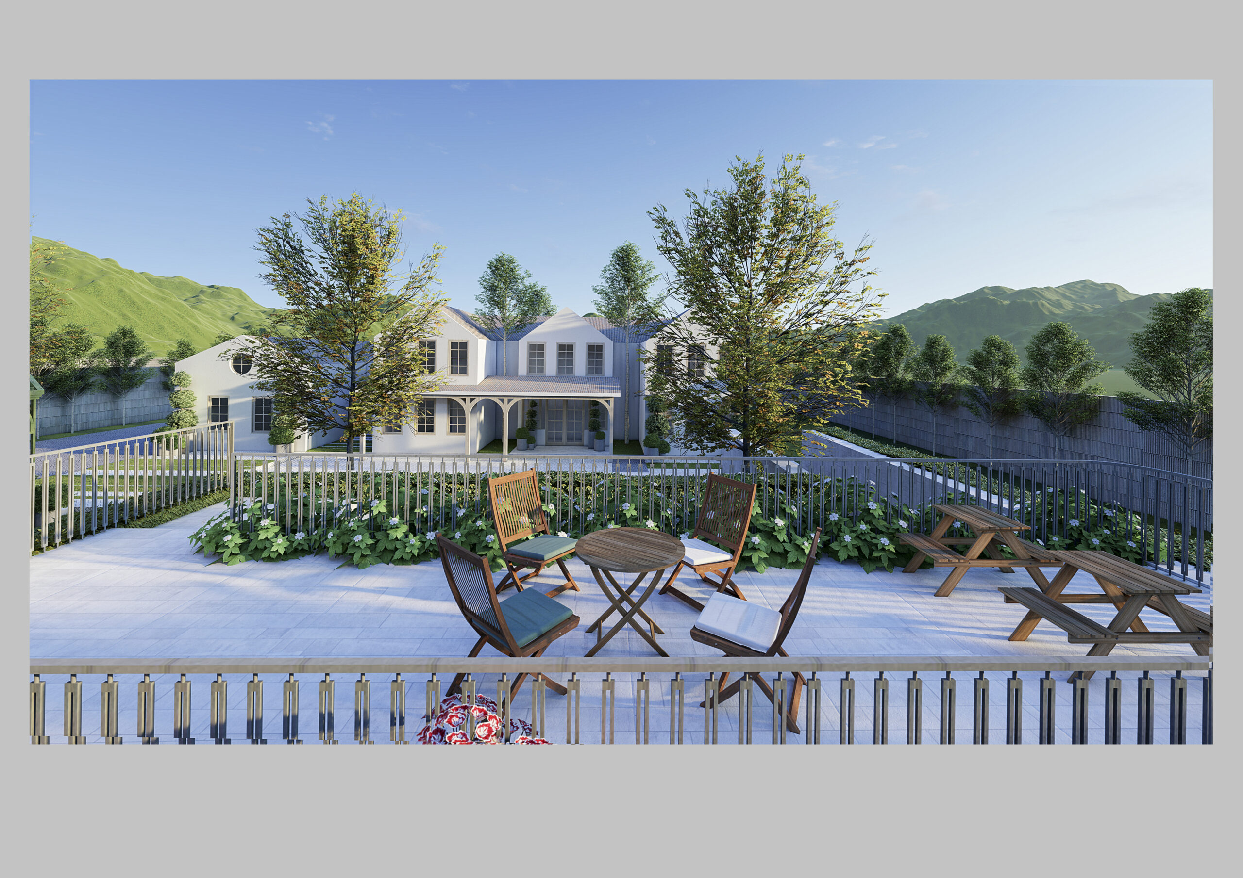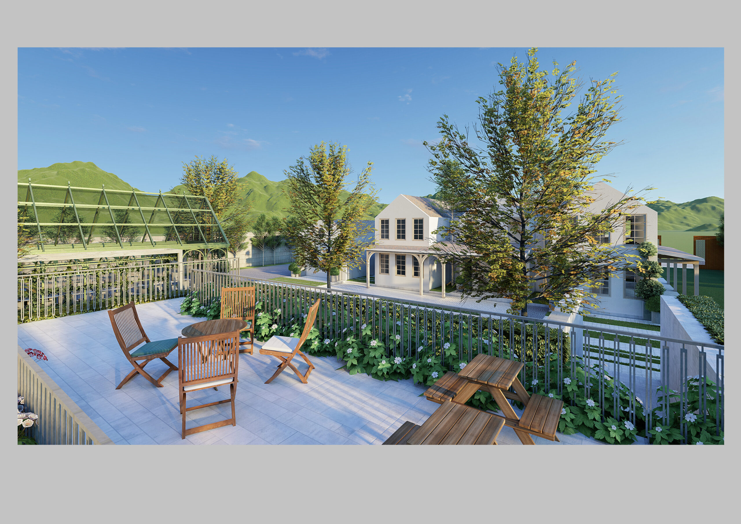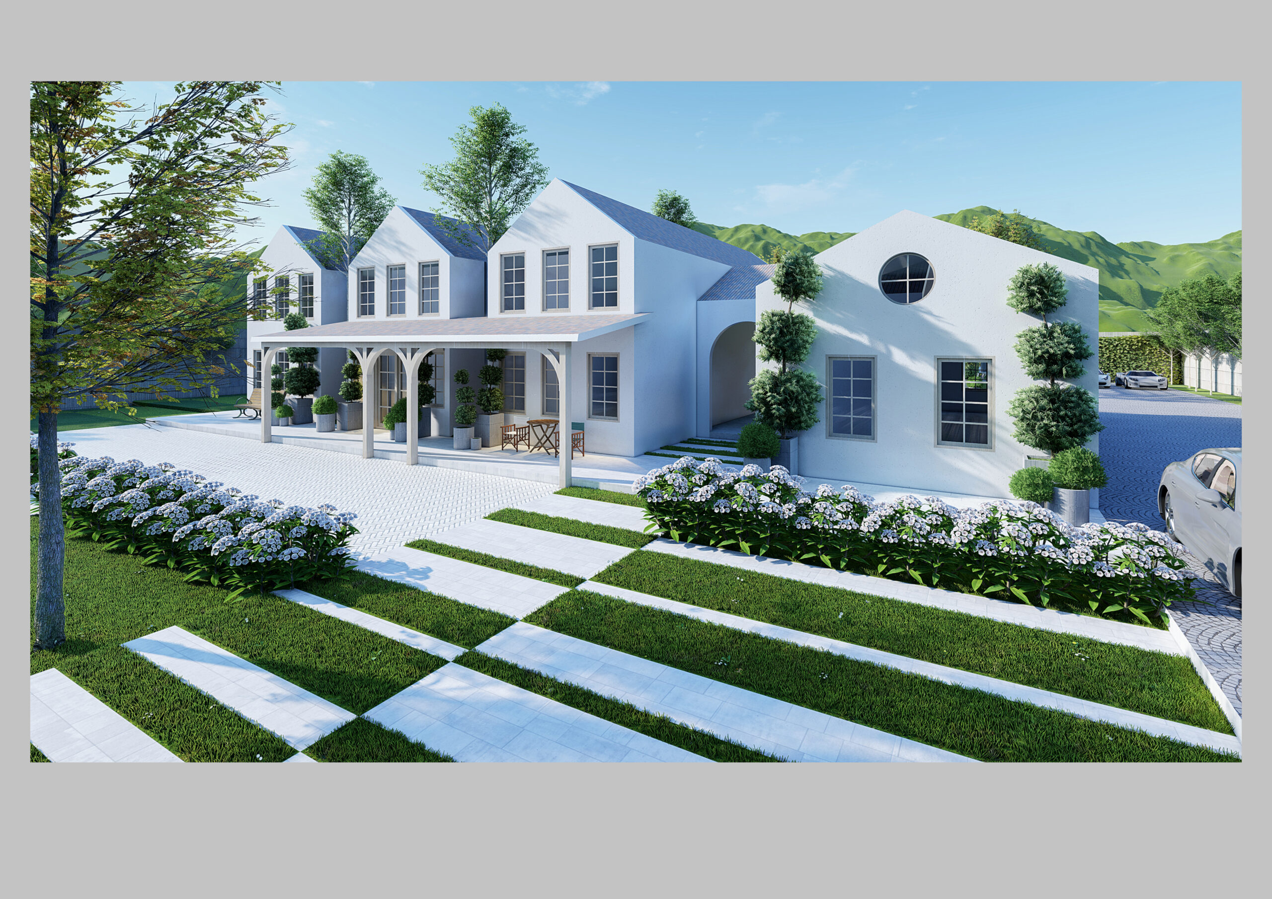 Chúng tôi đã lựa chọn các vật liệu bền vững như gỗ tái chế, đá và kim loại để tạo nên sự cân bằng hoàn hảo giữa thiên nhiên và kiến trúc hiện đại. Bên cạnh đó, các không gian sống ngoài trời như sân thượng, sân trong rộng rãi và hiên nhà mở cũng được tận dụng để chiêm ngưỡng khung cảnh tuyệt đẹp, đồng thời tạo ra nơi thư giãn và giải trí lý tưởng. Bên trong, thiết kế đơn giản nhưng vẫn thanh lịch, sử dụng các gam màu trung tính như trắng, be và xám để tạo nên một phông nền hoàn hảo, làm nổi bật vẻ đẹp tự nhiên của cảnh quan xung quanh.