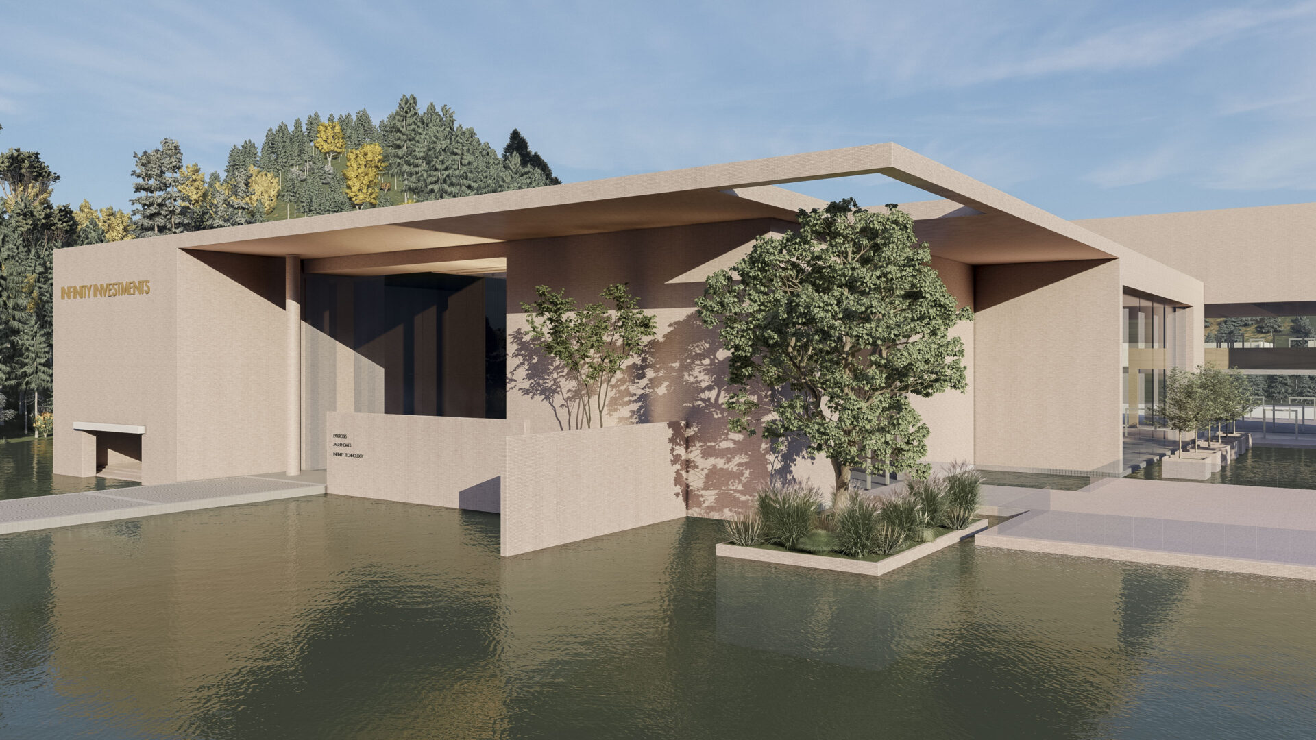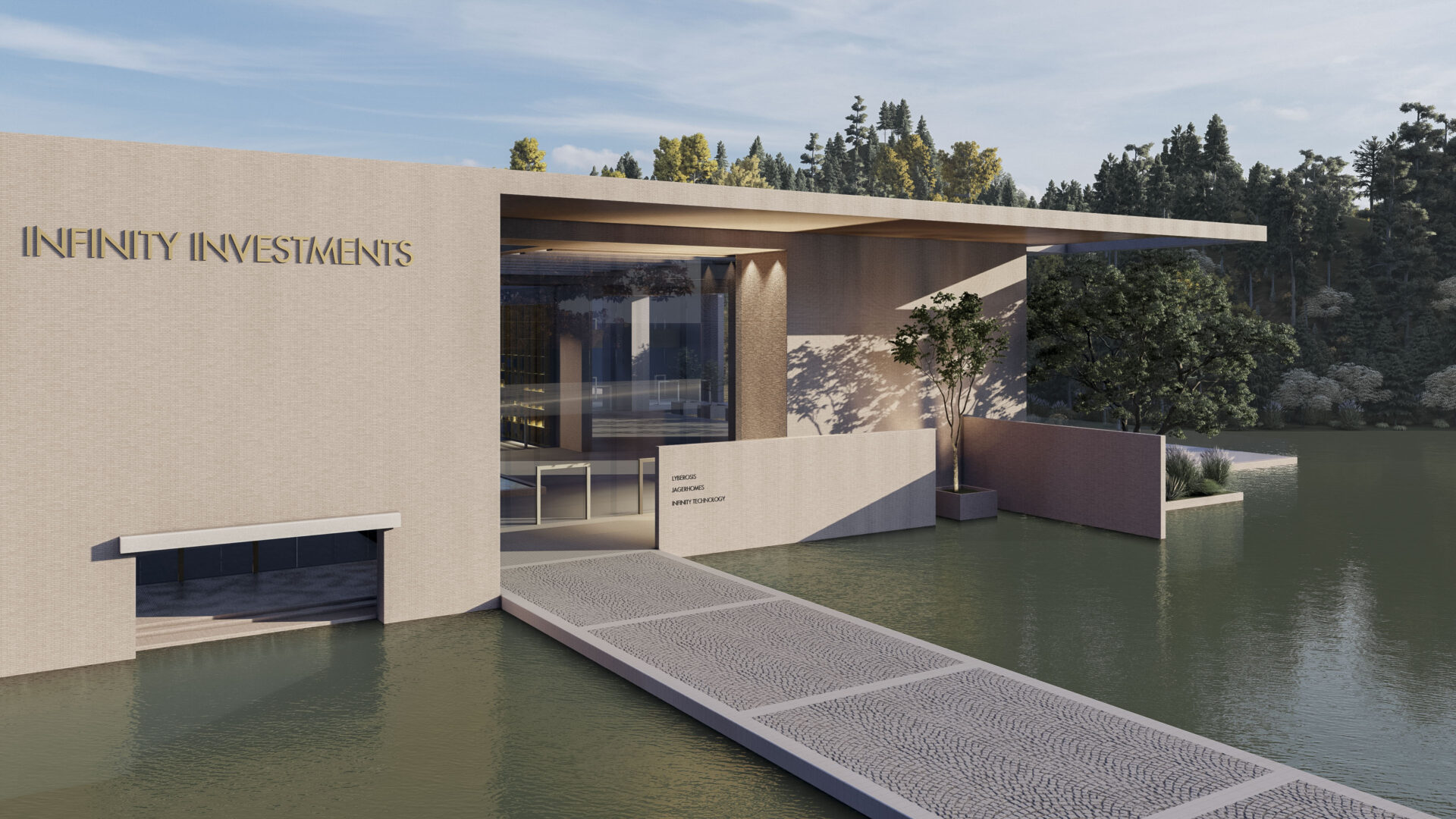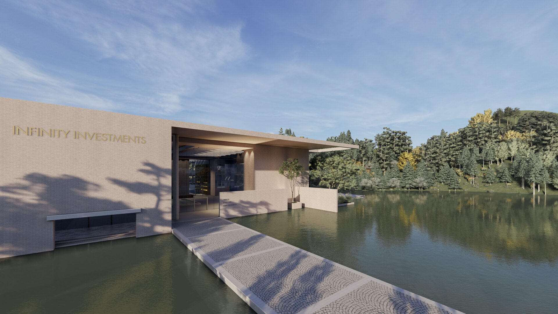 Nằm giữa khung cảnh thiên nhiên ngoạn mục với những cánh rừng xanh tươi và mặt nước trong lành, tòa nhà Infinity Investments là một minh chứng cho sự kiết hợp hài hòa trong lối kiến trúc hiện đại giữa con người với thiên nhiên.