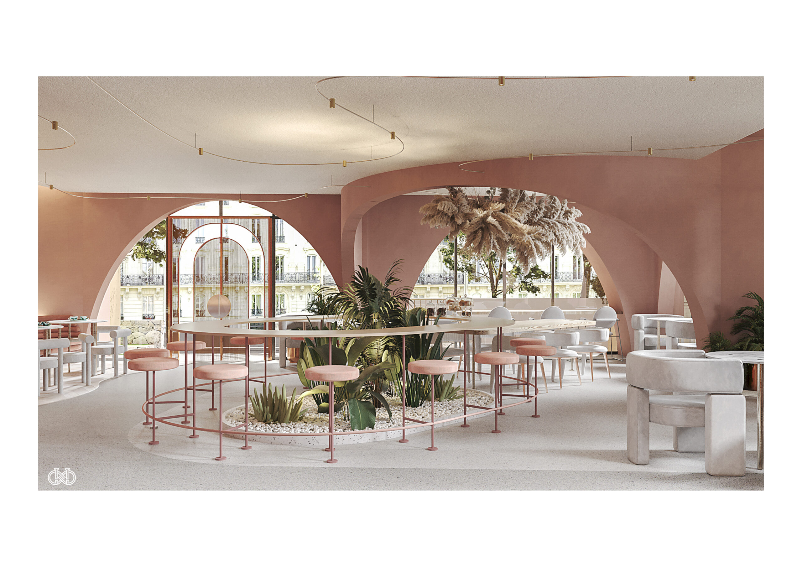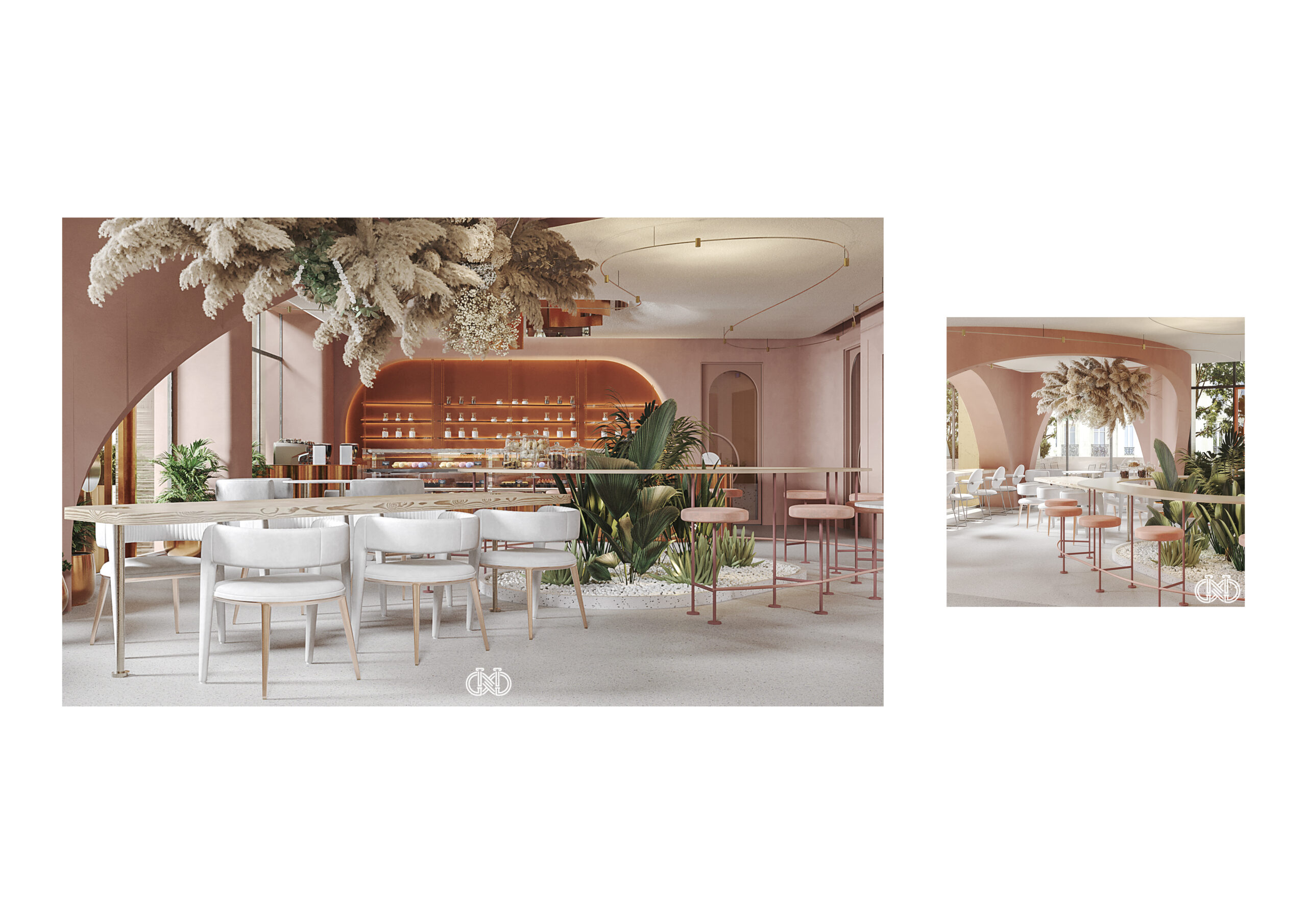 “The Dreamers – Bakery and Coffee” là một quán cà phê với những chiếc bánh xinh xắn và là nơi trú ẩn cho những giấc mơ lớn. Chủ quán đã từng tâm sự với chúng tôi về một không gian với tông màu hồng dịu dàng, pha chút lãng mạn và quý phái. Anh/chị ấy mong muốn không gian ấy phải thật nhẹ nhàng và thoáng đãng để dẫn lối cho những giấc mơ, một nơi để hồi phục, lấy đà bay cao. Bởi lẽ, những giấc mơ màu hồng giống như bong bóng xà phòng – tuy mong manh, nhưng lại vô cùng đẹp đẽ. Chúng cần không gian để bay lên, và với đủ động lực, chẳng ai biết chúng sẽ bay xa đến đâu.